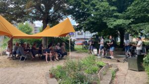 We verwelkomden op 29 juni 2025 zo’n 45 gasten in onze tuin. De Kleine Wereld zal jaarlijks haar Open Dag combineren met de zomereditie van Gluren Bij De Buren. Je kunt 28 juni 2026 dus alvast in je agenda noteren!