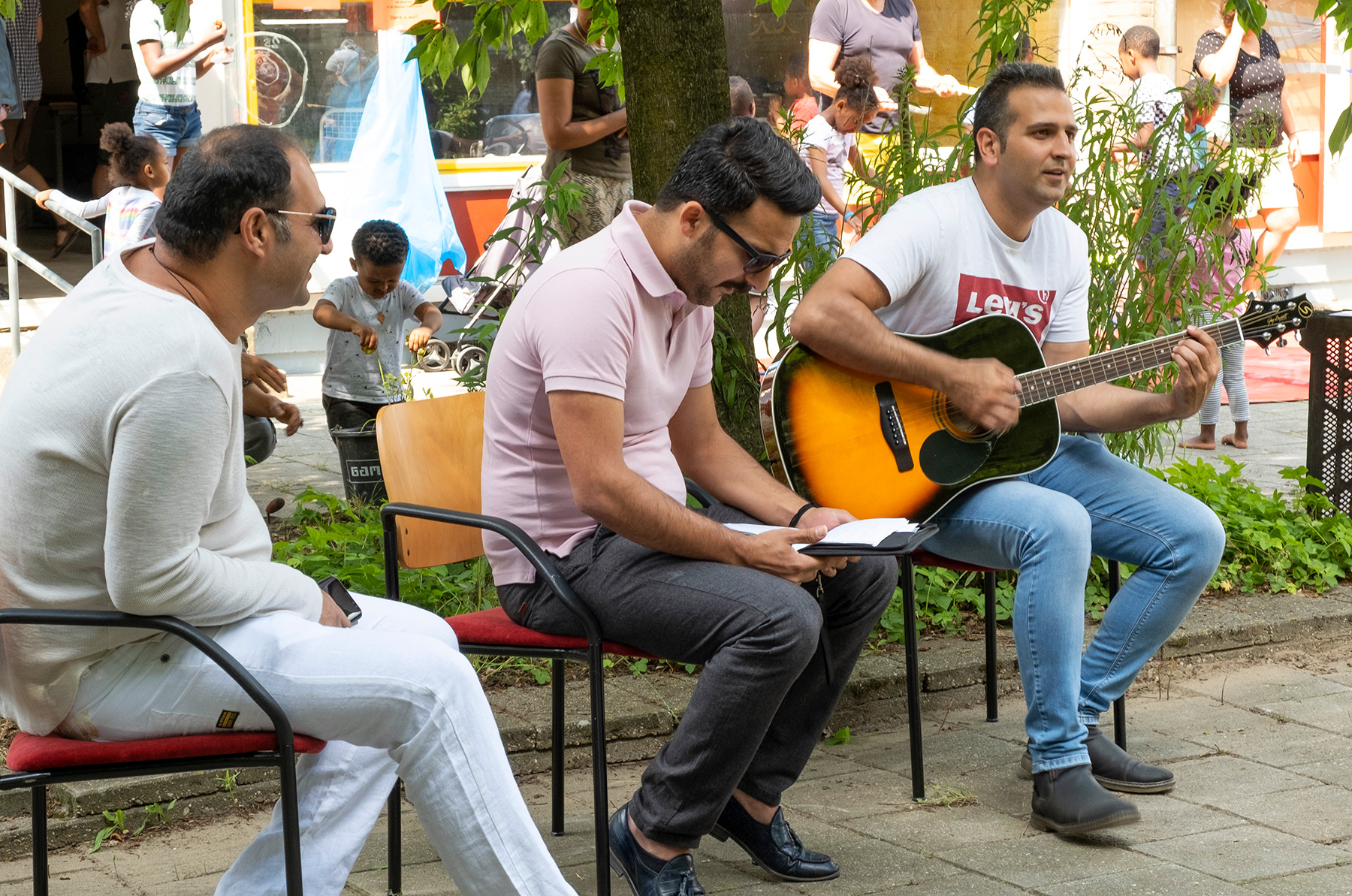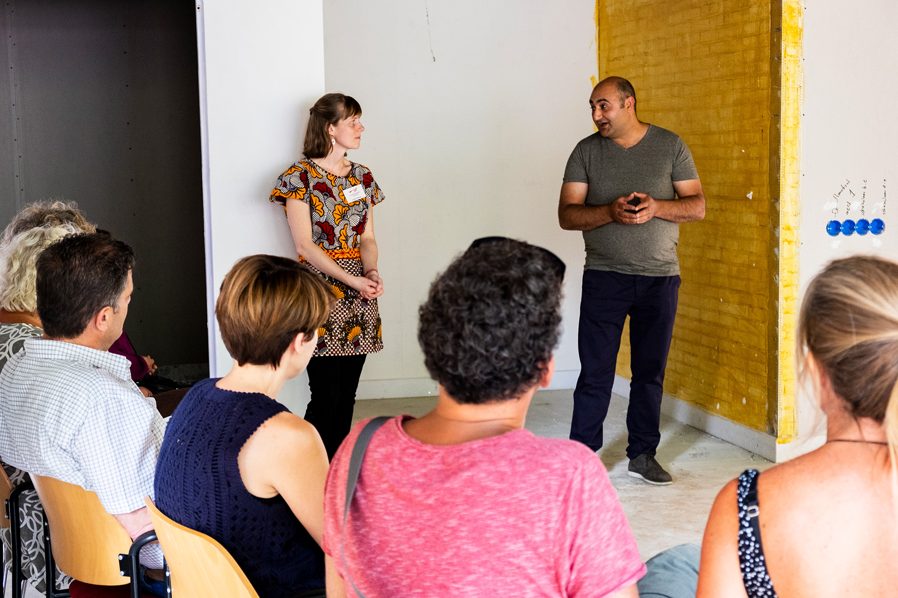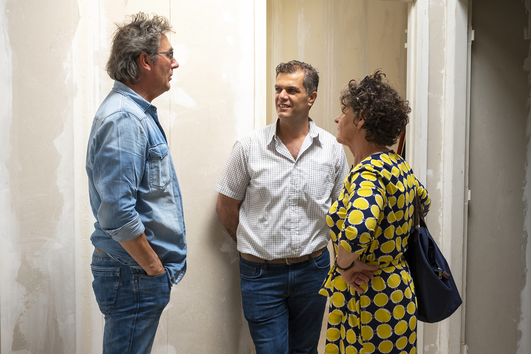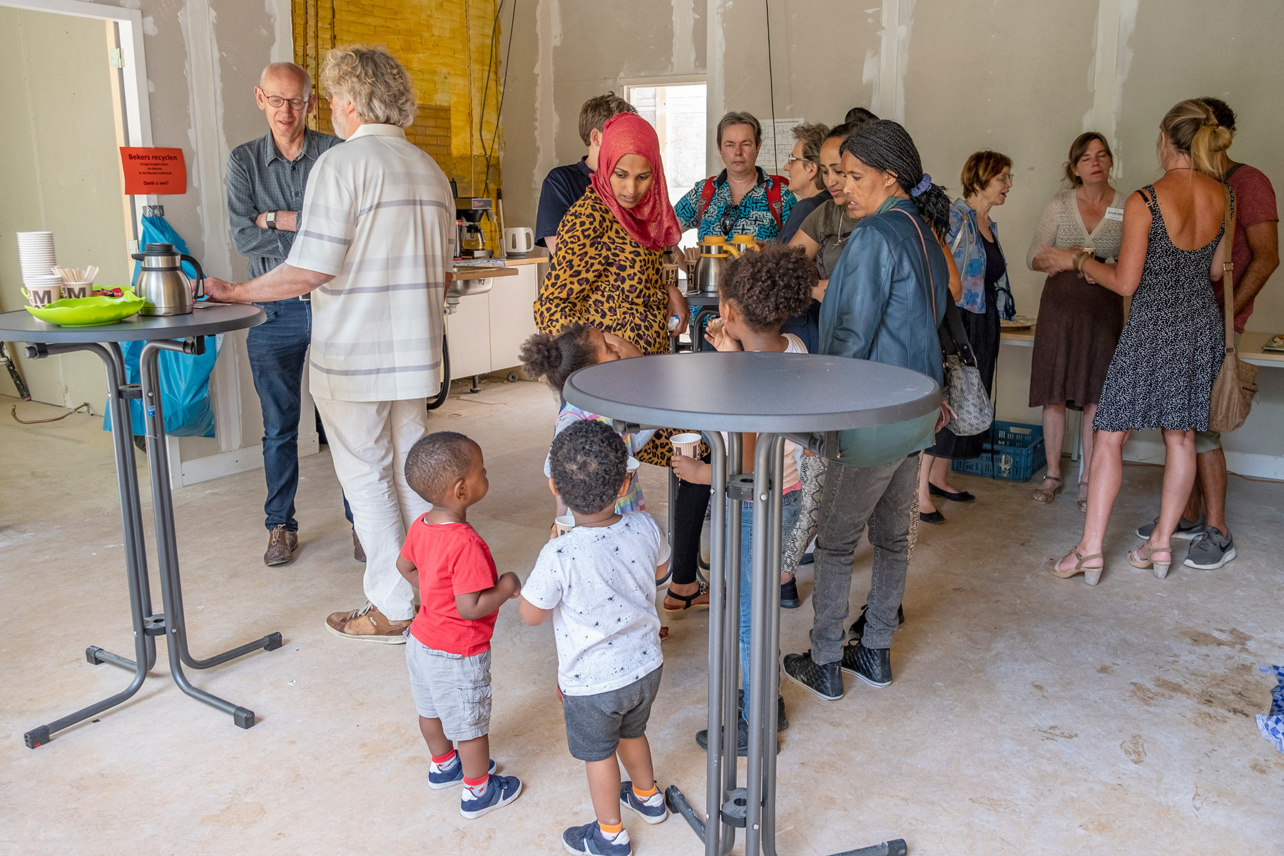 Burgemeester van Rumund en wethouder de Brito werden al in 2015 enthousiast over het idee van de Woonwerkplaats. Hoe leuk om hen, nu we een half jaar hebben gebouwd, rond te leiden en bij te praten over het project! Onder het genot van koffie en baklava werden verhalen uitgewisseld.